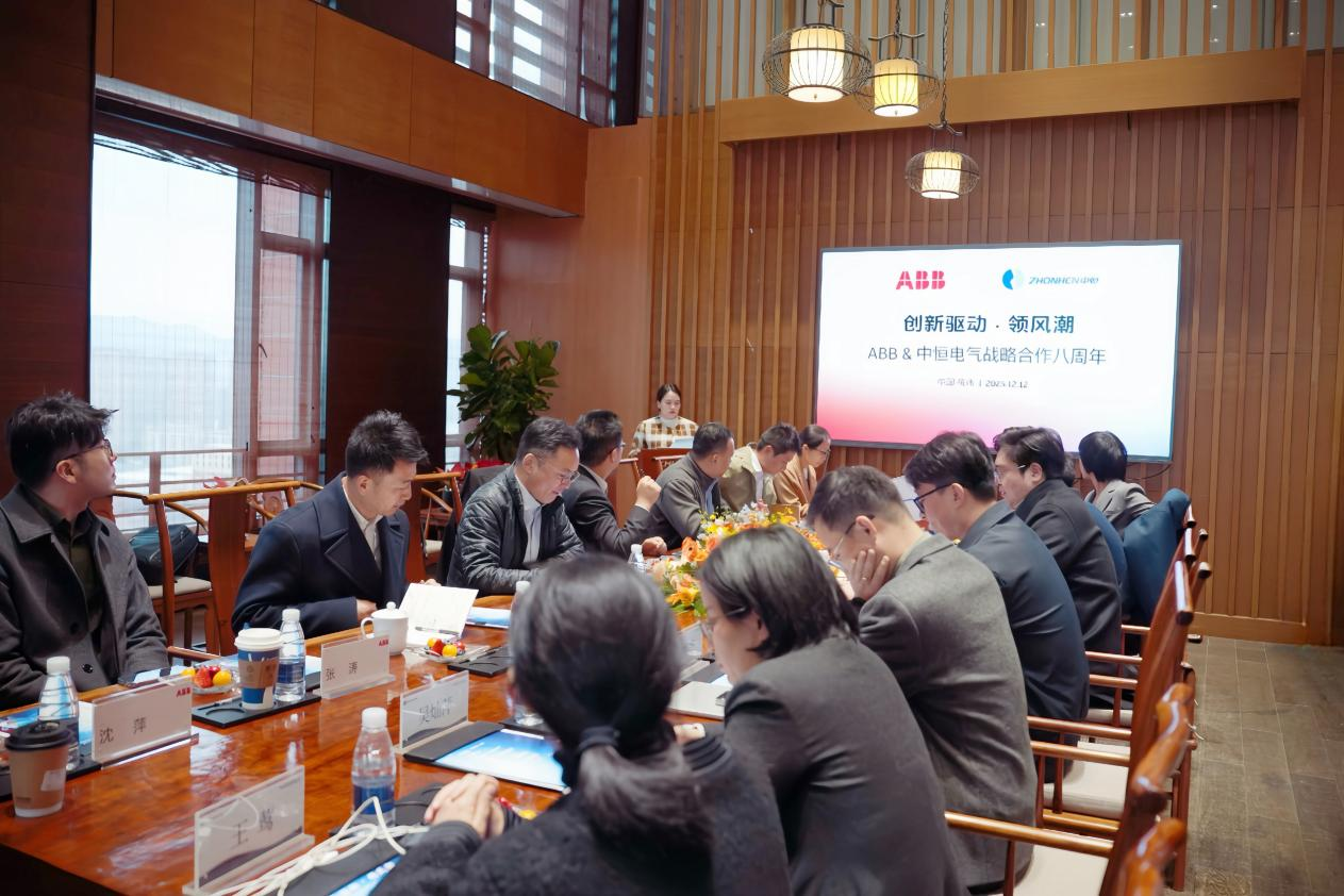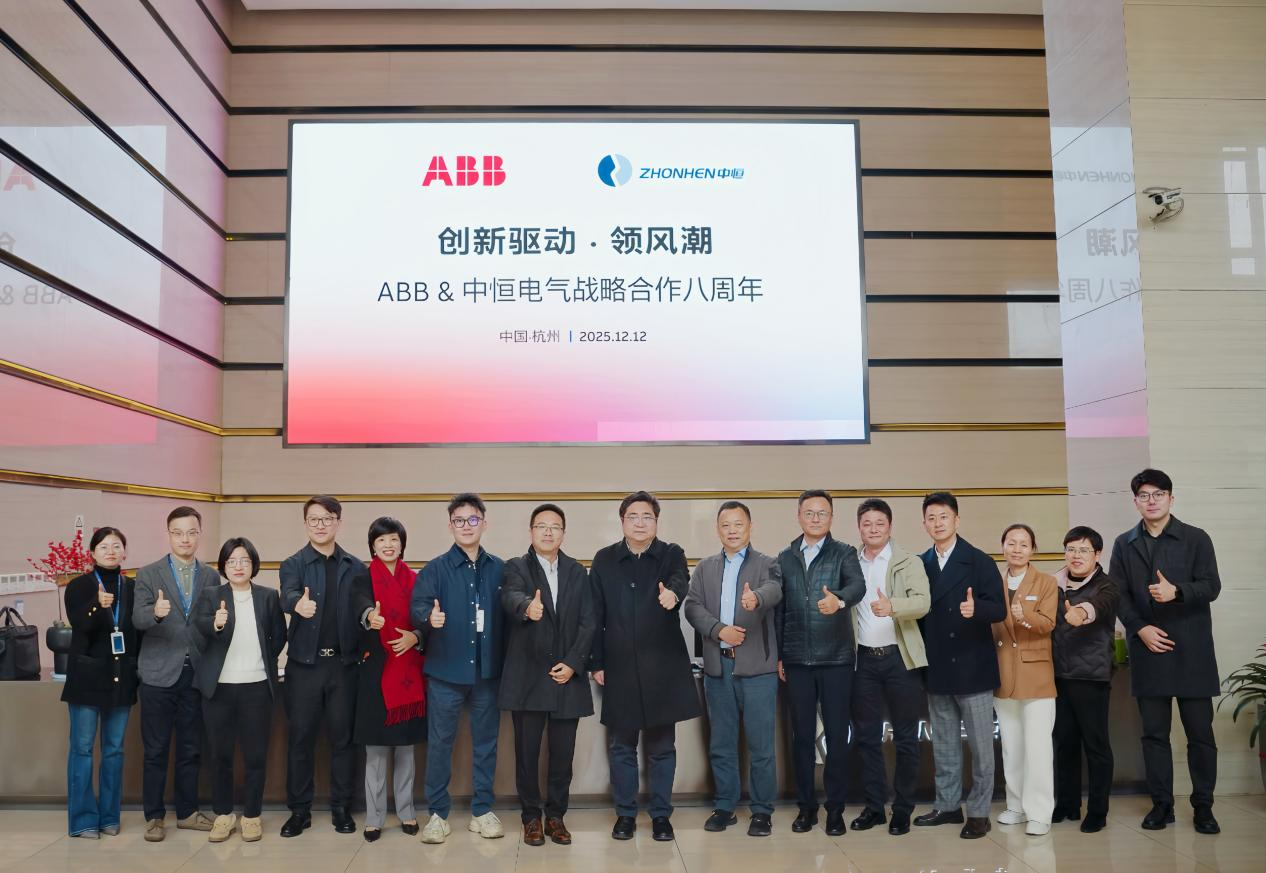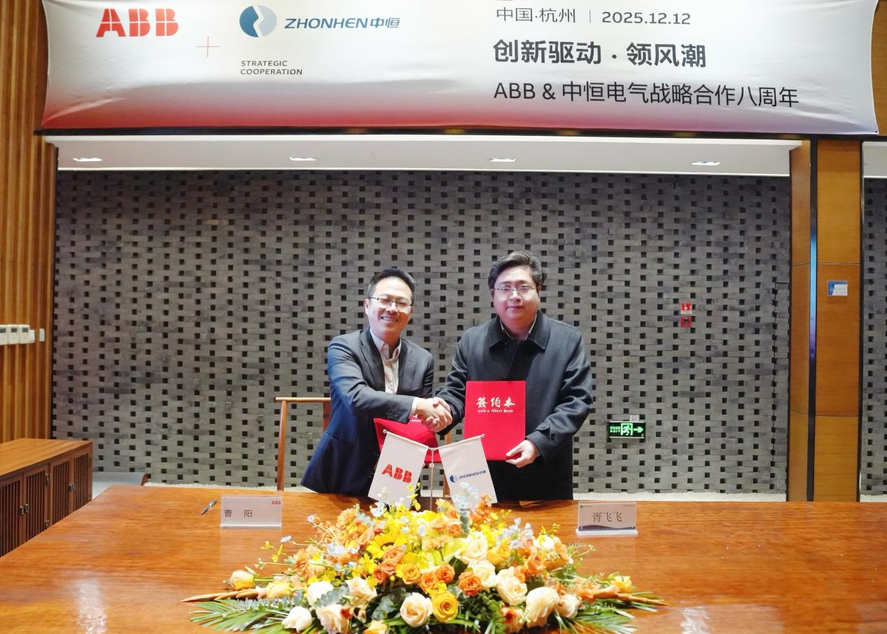 2025年12月12日下午,杭州中恒電氣股份有限公司(以下簡稱:中恒電氣)與ABB(中國)有限公司電氣事業(yè)部(以下簡稱:ABB)在杭州中恒電氣總部舉辦了主題為“創(chuàng)新驅(qū)動·領(lǐng)風(fēng)潮”戰(zhàn)略合作八周年簽約儀式。